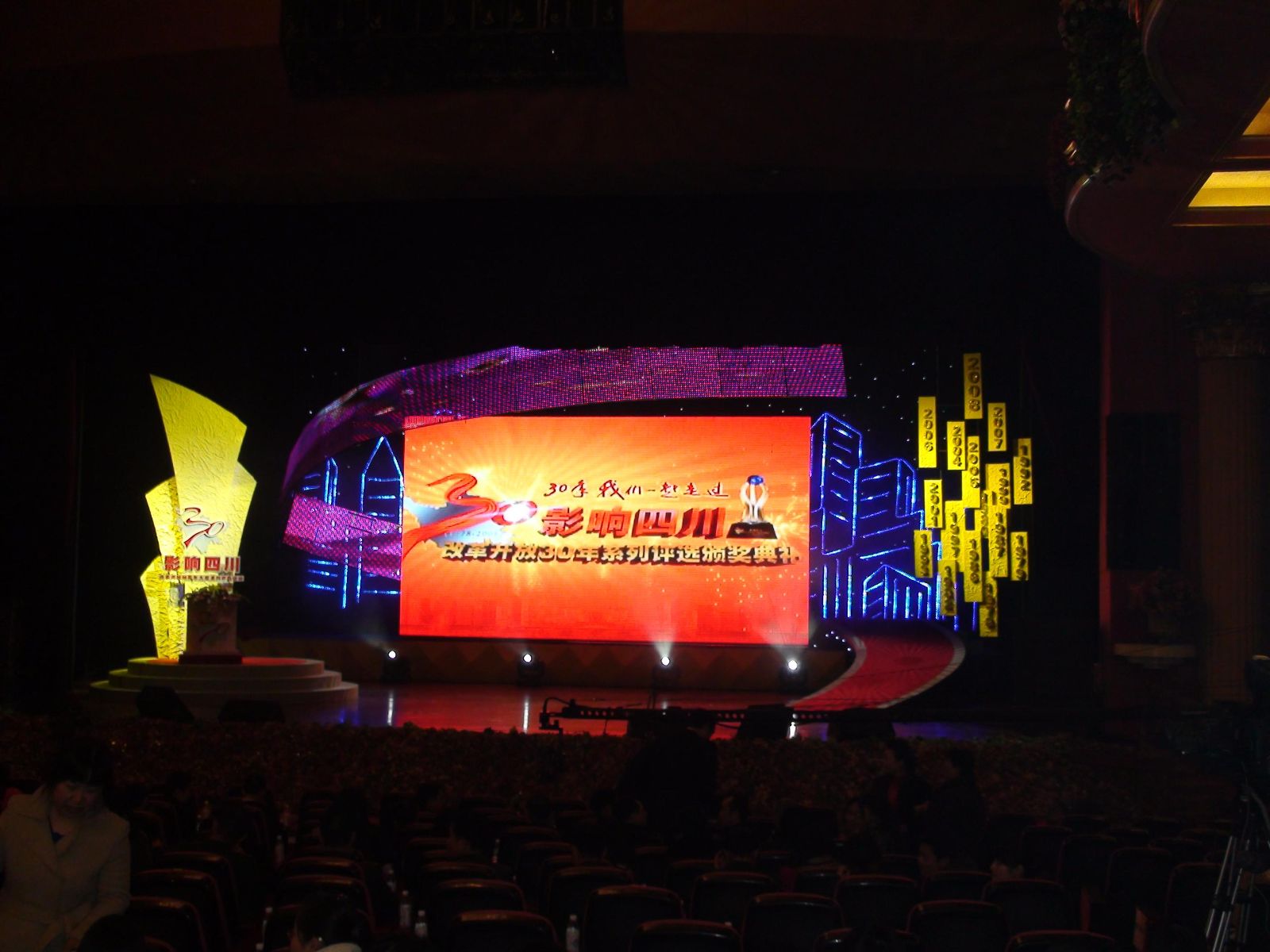 12月30日晚,在成都電視臺(tái)舉行了"影響四川.改革開(kāi)放30年系列評(píng)選頒獎(jiǎng)典禮"活動(dòng),省委常委,宣傳部長(zhǎng)黃新初,省人大常委會(huì)副主任王宇坤,副省長(zhǎng)黃彥蓉,省政協(xié)副主席陳杰,省科技顧問(wèn)副主任等領(lǐng)導(dǎo)參加了這次評(píng)選活動(dòng).一起見(jiàn)證改革開(kāi)放30周年的光輝歷史.頒漿晚會(huì)典禮現(xiàn)場(chǎng)揭曉了10大最具標(biāo)志性事件和10大最具標(biāo)志性風(fēng)云人物,取得了圓滿成功